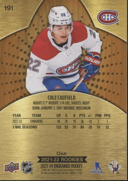 Cole Caufield 2023-24 Panini Engrained Oak RC #191