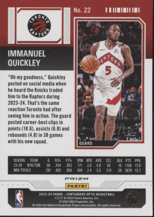 Immanuel Quickley 2023-24 Contenders Optic Season Ticket Orange Prizm 13/49