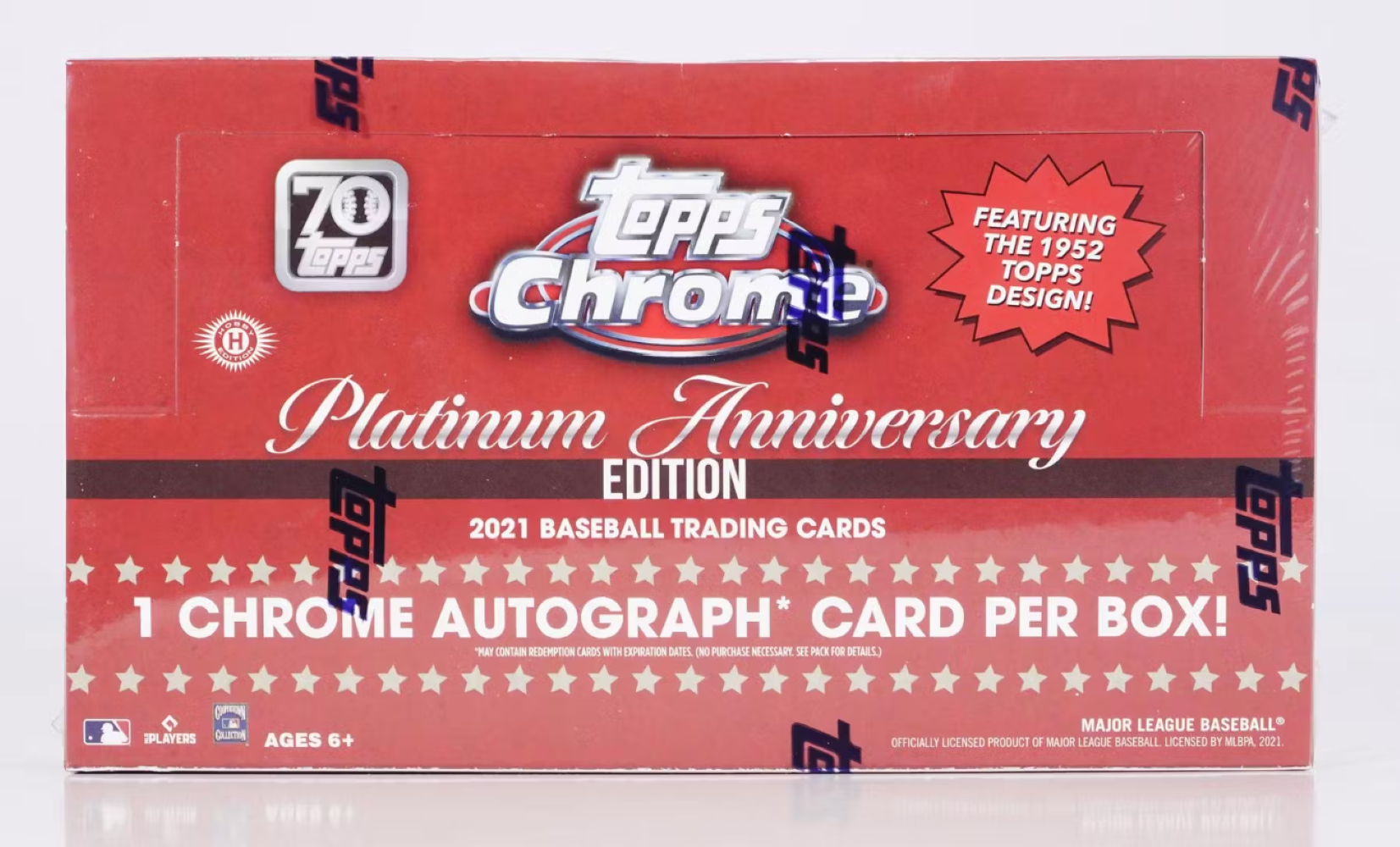 2021 Topps Chrome Baseball Cards Platinum Anniversary Edition HOBBY & LITE - With 70 years of excellence and tradition leading up to 2021, Topps is rejuvenating possibly the most iconic Topps design of 1952, for this 2021 Topps Chrome Platinum Anniversary celebration! Build the eye-popping 700-card Base Set, featuring players from throughout 70 years of Topps Baseball cards, and collect them across an extensive rainbow of color parallels! Look for a variety of RARE Color Parallels & Chrome Autograph cards!
