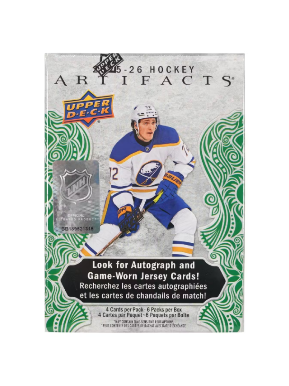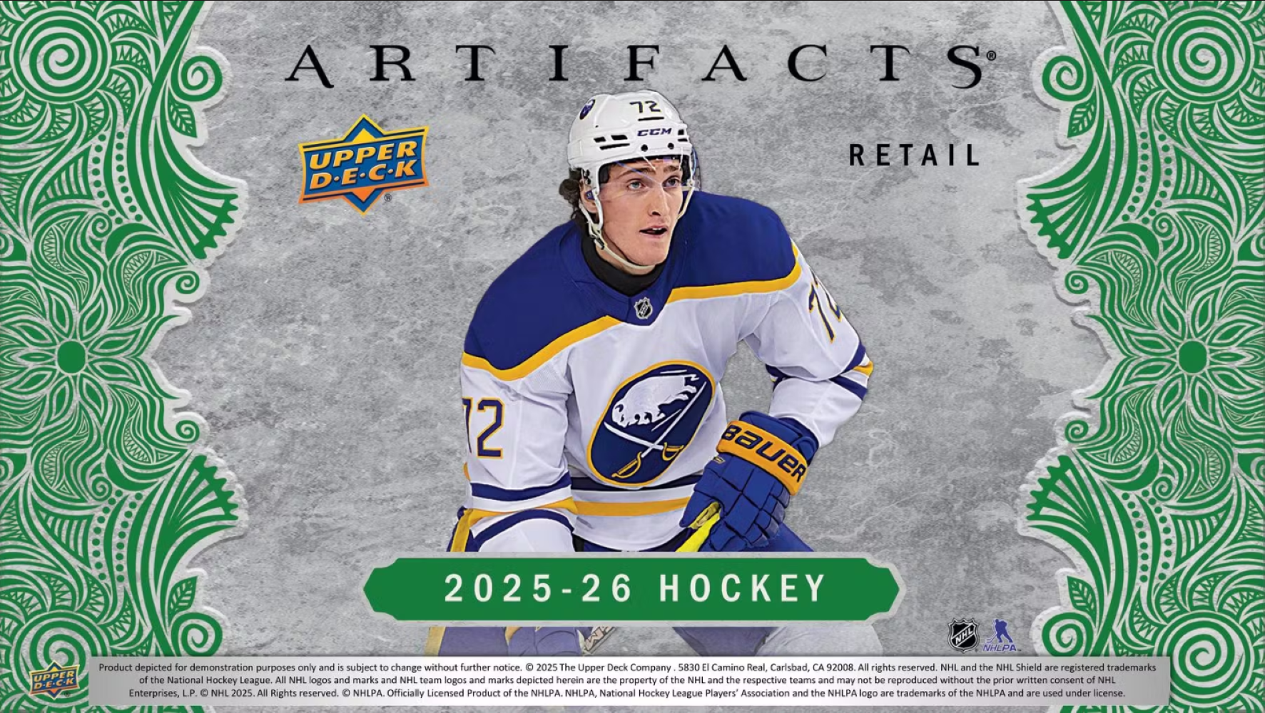 The latest edition of Artifacts features a loaded 240-card base set which includes redemption cards for new-skating 2025-26 rookies. Search for Base Set parallels including the Blaster-Exclusive Jade Green and Sky Blue parallels of the complete Base Set!