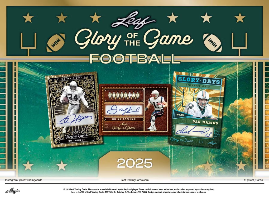 No other company can offer the amazing variety of game-used memorabilia that Leaf Trading Cards provides in 2025 Leaf Glory of the Game Football.