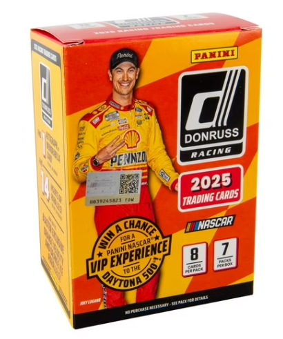Panini is back with the fan favorite Donruss Racing for 2025! This Blaster Box includes 7 Packs containing 8 Cards each! Win a Chance for a Panini Nascar VIP experience to the Daytona 500!
