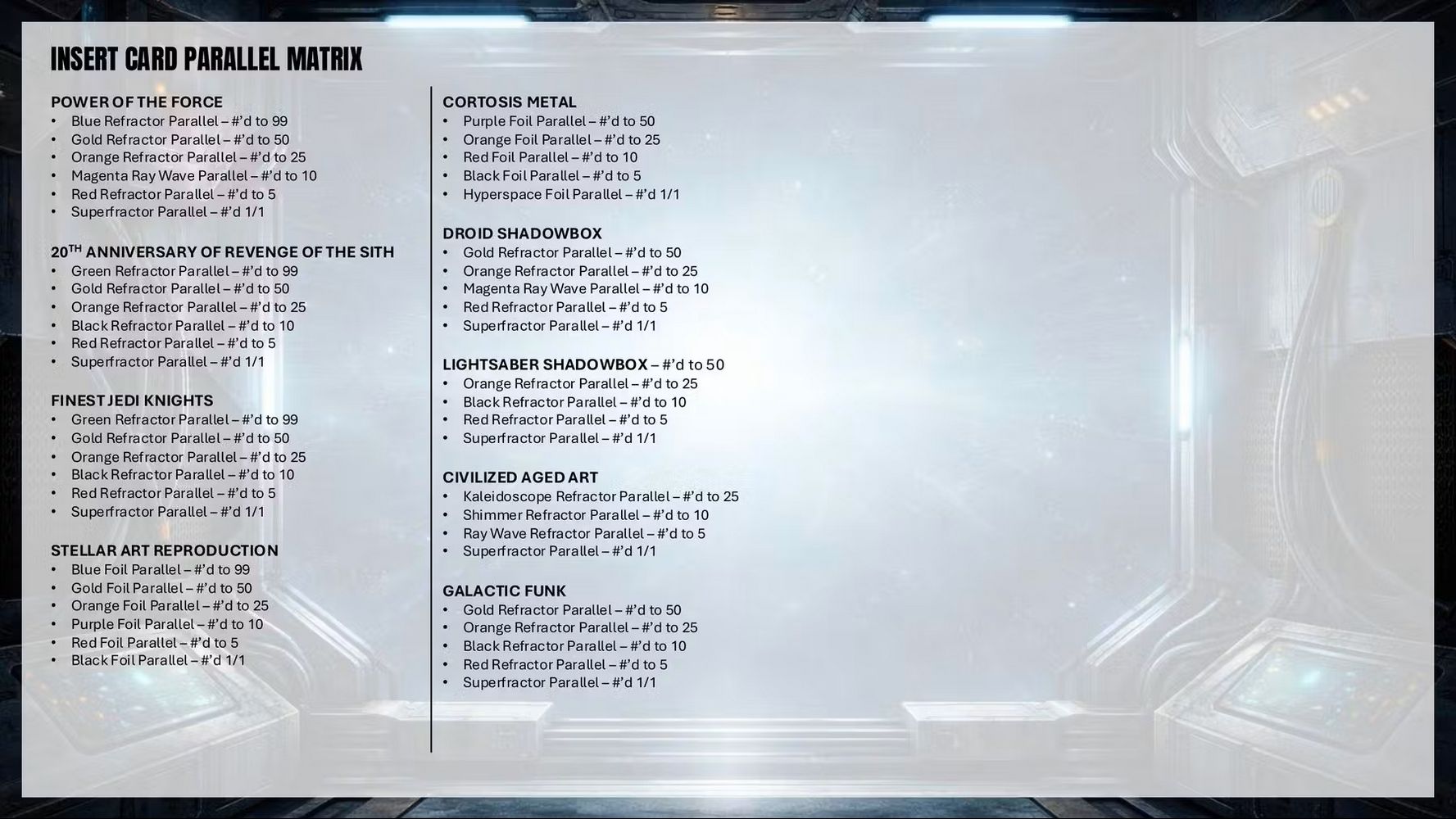Inspired by the rare metal as shown on The Acolyte, the limited Cortosis cards will be very new to collectors and equally fun to collect as they stand out from the entire set.