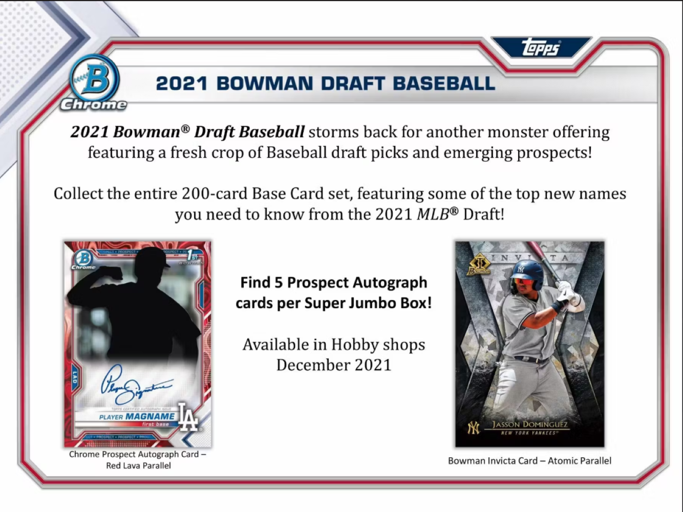 2021 Bowman Draft Baseball storms back for another monster offering featuring a fresh crop of Baseball draft picks and emerging prospects!