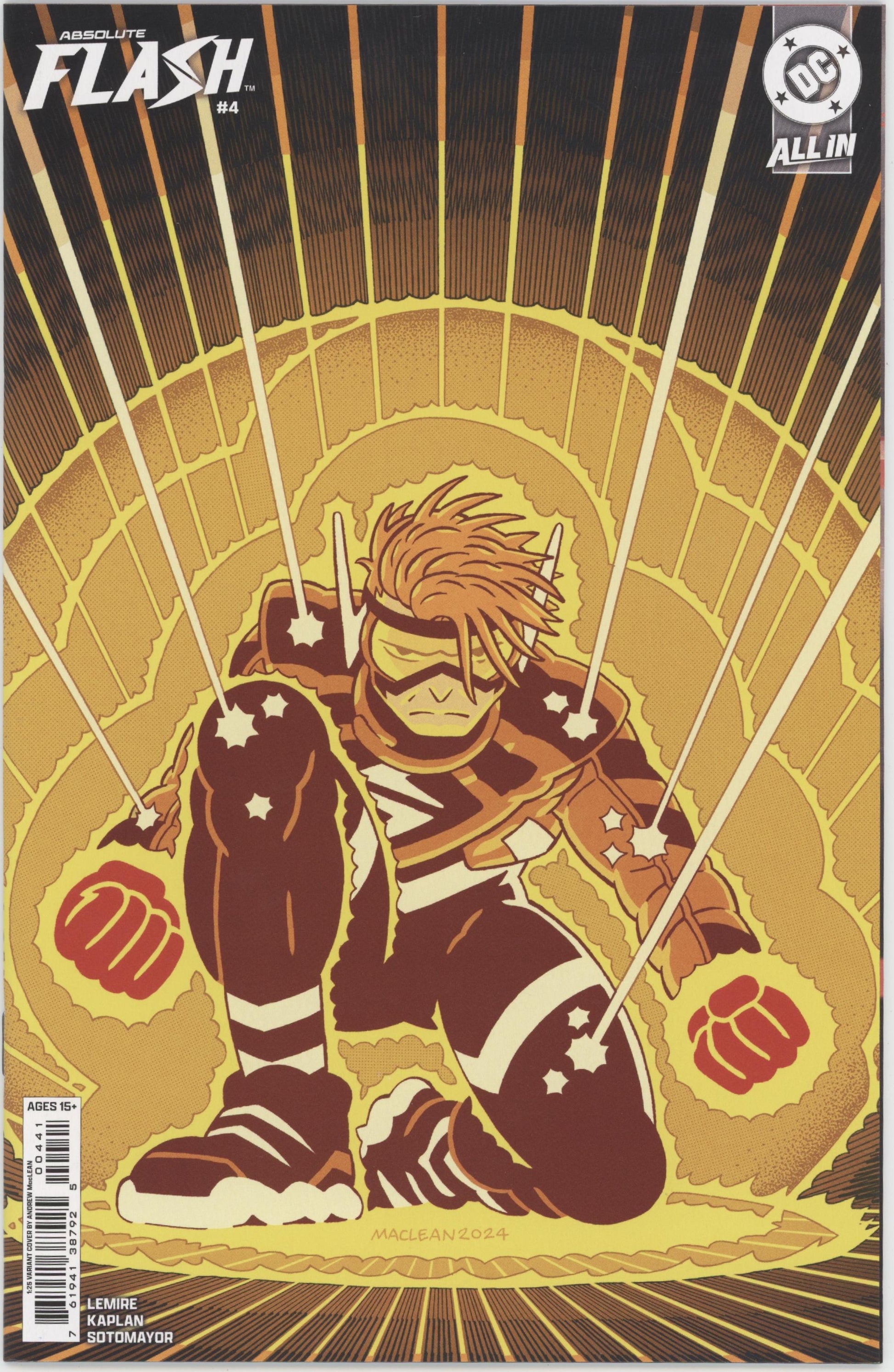 Limited 1 for 25 Retailer Incentive Variant Cover. Written by Jeff Lemire. Art by AL Kaplan. Cover by Andrew MacLean. Wally's on the run and looking for any safe space to hide out. He finds himself in Central City and meets a kindly man who offers him a place to crash at the youth mission. But is anyone truly safe when the fastest kid alive comes to their city? 32 Pages, full color. Rated T+