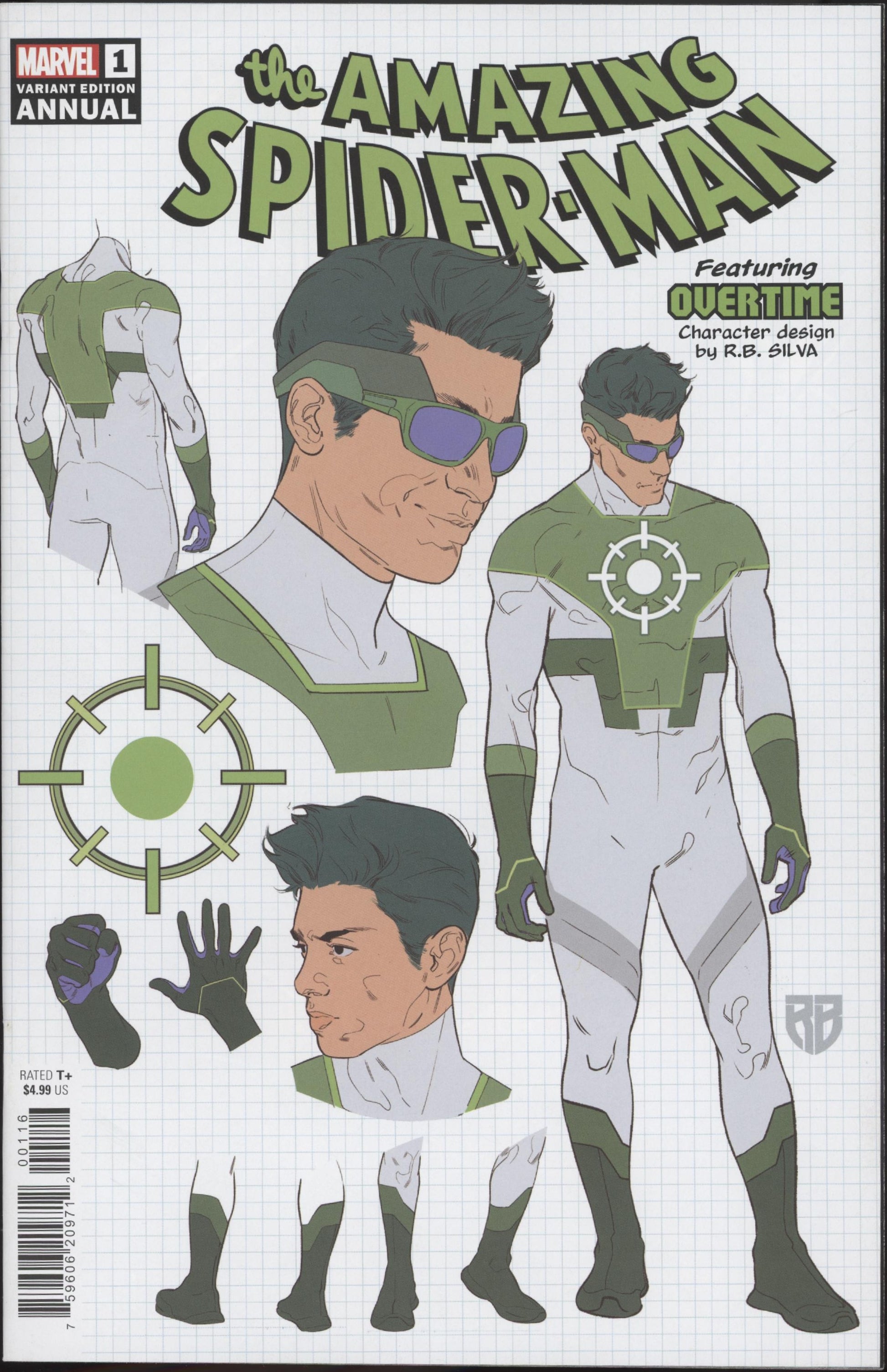 Limited 1 for 10 Retailer Incentive Variant Cover. Written by Derek Landy. Art by Rom Lim. Cover by R.B. Silva. "INFINITY WATCH" PART TWO! The TIME STONE BEARER, a.k.a. OVERTIME, takes on SPIDER-MAN! Time travel vs. Spider-Sense! The Infinity Watch grows and the universe is in deep deep trouble… PLUS- THE DEATH STONE BEARER HAS ARRIVED! Derek Landy and Sara Pichelli's Annual-Linking story marches on with more surprises than you can handle! 32 pages, full color. Rated T+