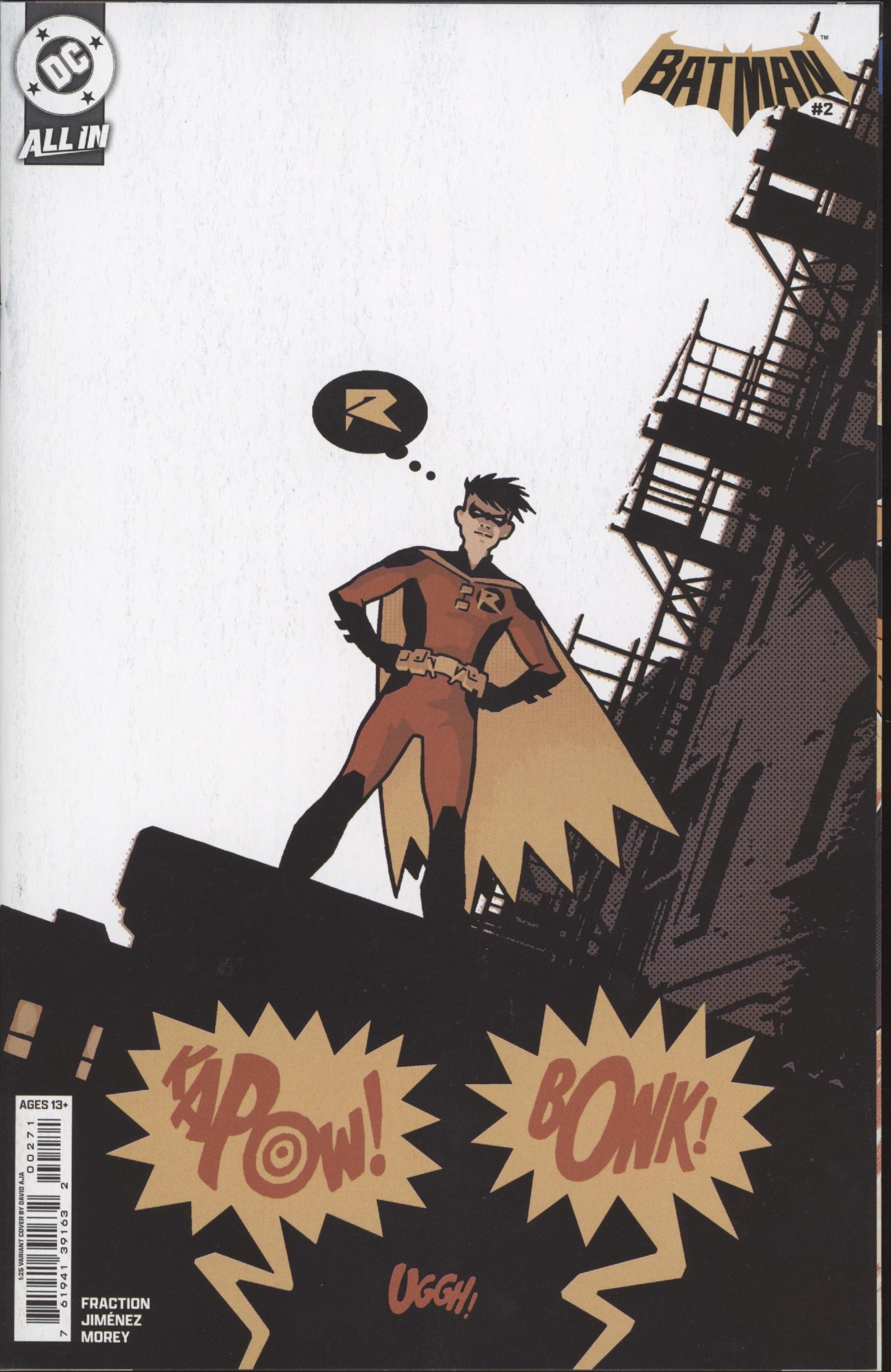 Limited 1 for 25 Retailer Incentive Variant Cover. Written by Matt Fraction. Art by Jorge Jimenez. Cover by David Aja. ROBIN GETS HIS OWN DARK NIGHT AS FRACTION & JIMENEZ TURN UP THE HEAT ON THE DYNAMIC DUO! Injured, cuffed, and tossed in the back of a GCPD paddy wagon with a dozen uncuffed and violent criminals, Robin (Tim Drake) will have to use everything he’s learned from the Dark Knight if he hopes to survive his own dark night. Will Batman arrive in time to help him, or will this mission change the way the city and the GCPD view the Dynamic Duo forever?