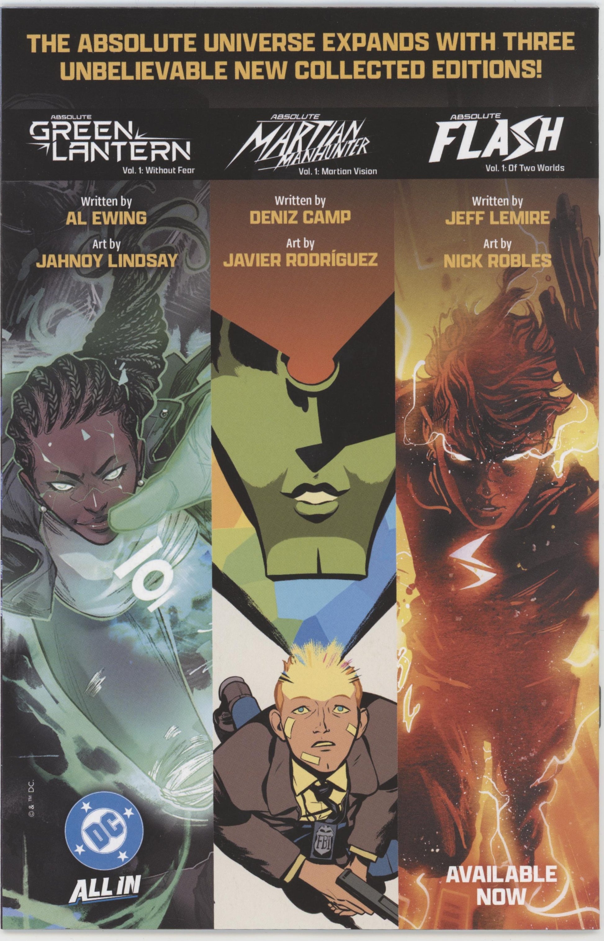 4th Printing Written by Scott Snyder. Art by Nick Dragotta. Cover by Nick Dragotta. WILL THE PARTY END HERE FOR ABSOLUTE BATMAN? With his friends lives at stake, will a broken, beaten, and ultimately defeated Bruce Wayne finally compromise and give up both himself and his morals to Black Mask? Or does he have something even BIGGER than himself to help? And what does this have to do with Mayor James Gordon and his relationship with a young Bruce Wayne? All this and more in the penultimate issue to the first arc of ABSOLUTE BATMAN! 28 pages, full color. Rated T+