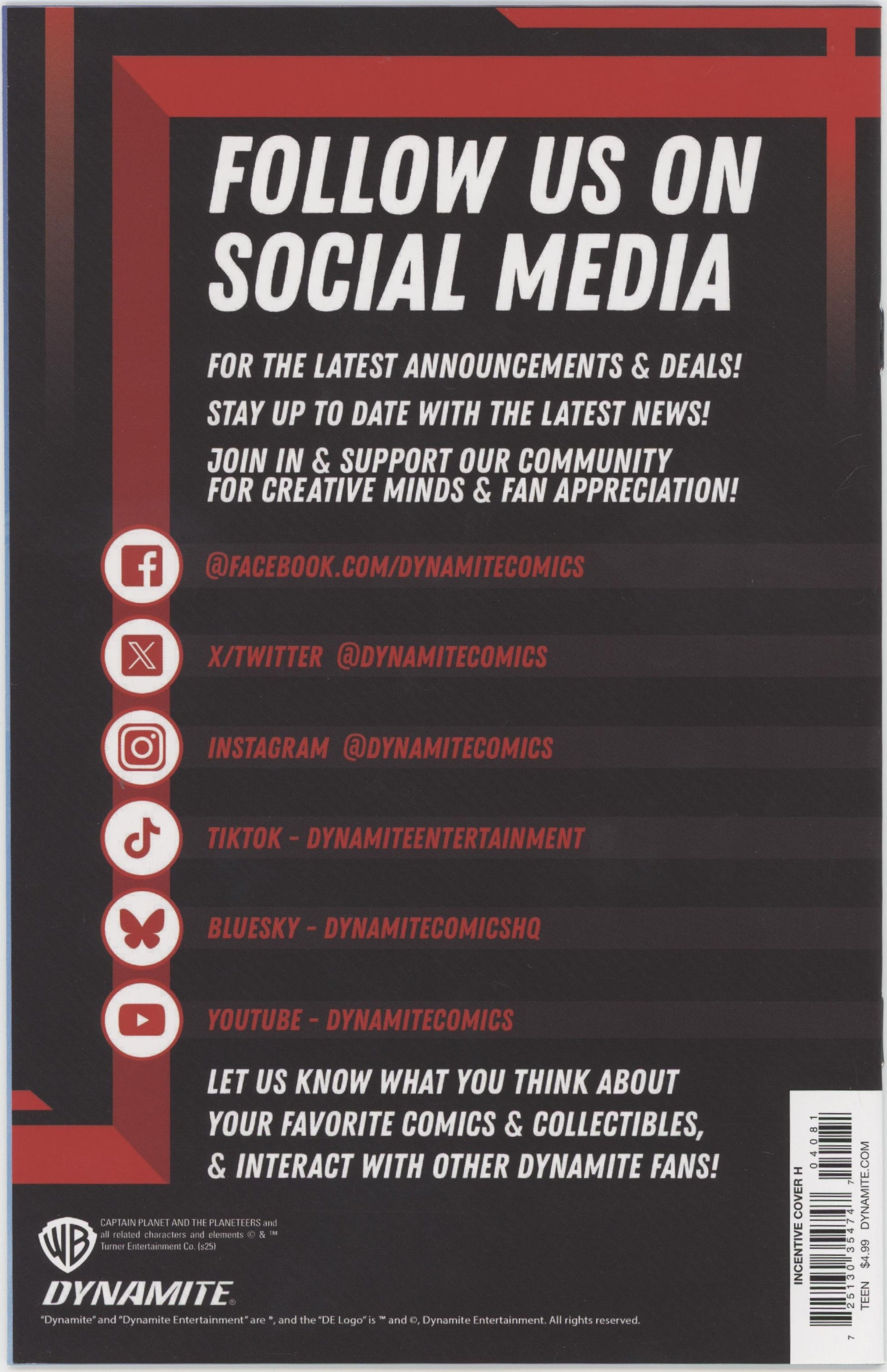 Limited 1 for 10 Retailer Incentive Variant Cover. Written by David Pepose. Art by Eman Casallos. Cover by Ben Oliver. THE POWER IS YOURS - BUT NOT FOR LONG! In this issue: Things are go from bad to worse for our eco- heroes as they desperately fight against the overwhelming might of Lucian Plunder! Now, tapping into a corrupted power source, the malevolent Plunder unveils his newest and deadliest weapon - a twisted version of himself called Captain Pollution! Honorary Planeteers DAVID PEPOSE and EMAN CASALLOS step up their storytelling game in Captain Planet #4 - buoyed by breathtaking covers from CHAD HARDIN, CHRISTIAN WARD, BEN OLIVER, and connecting art from JAE LEE & JUNE CHUNG! 32 pages, full color. Rated T