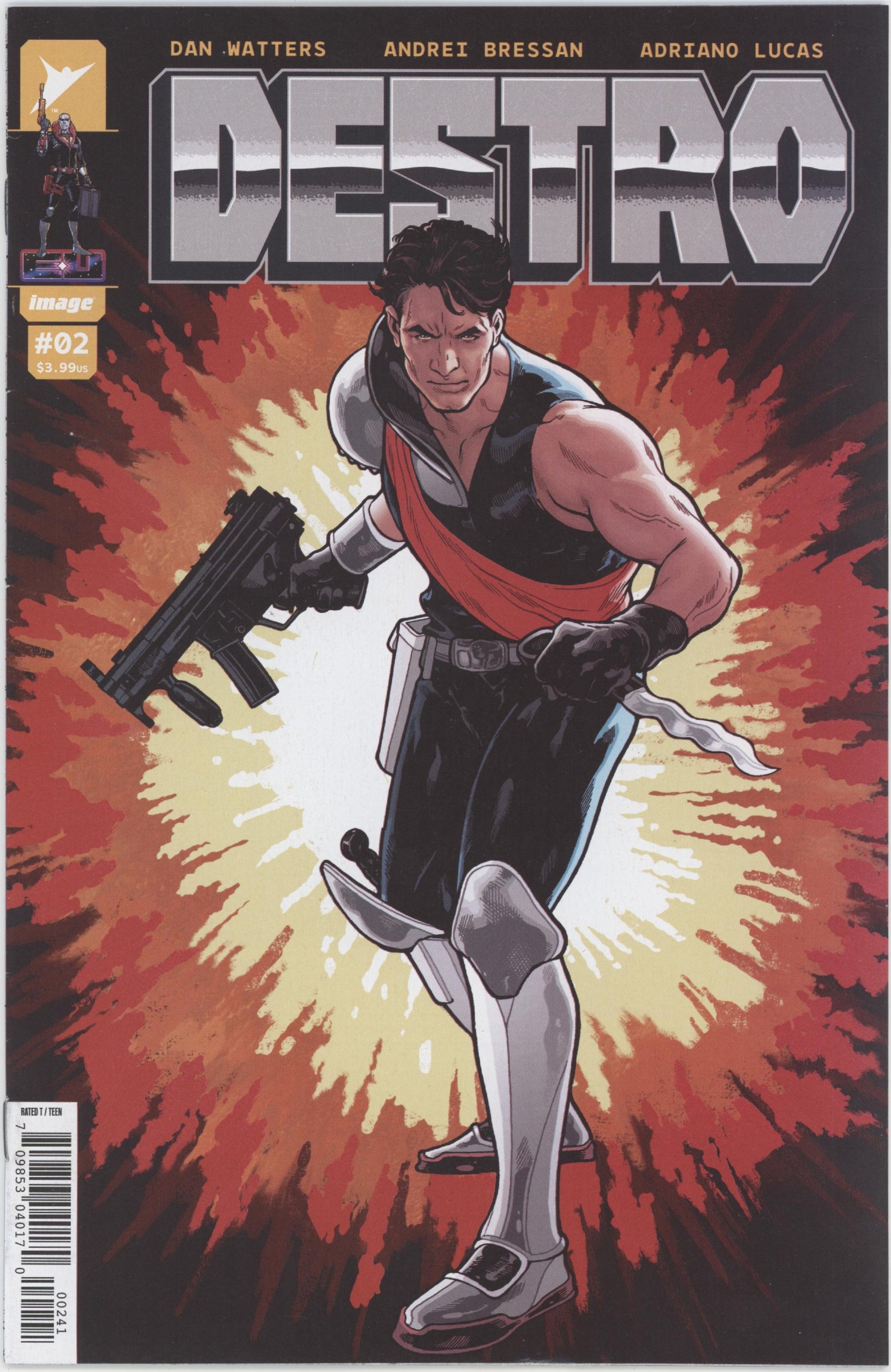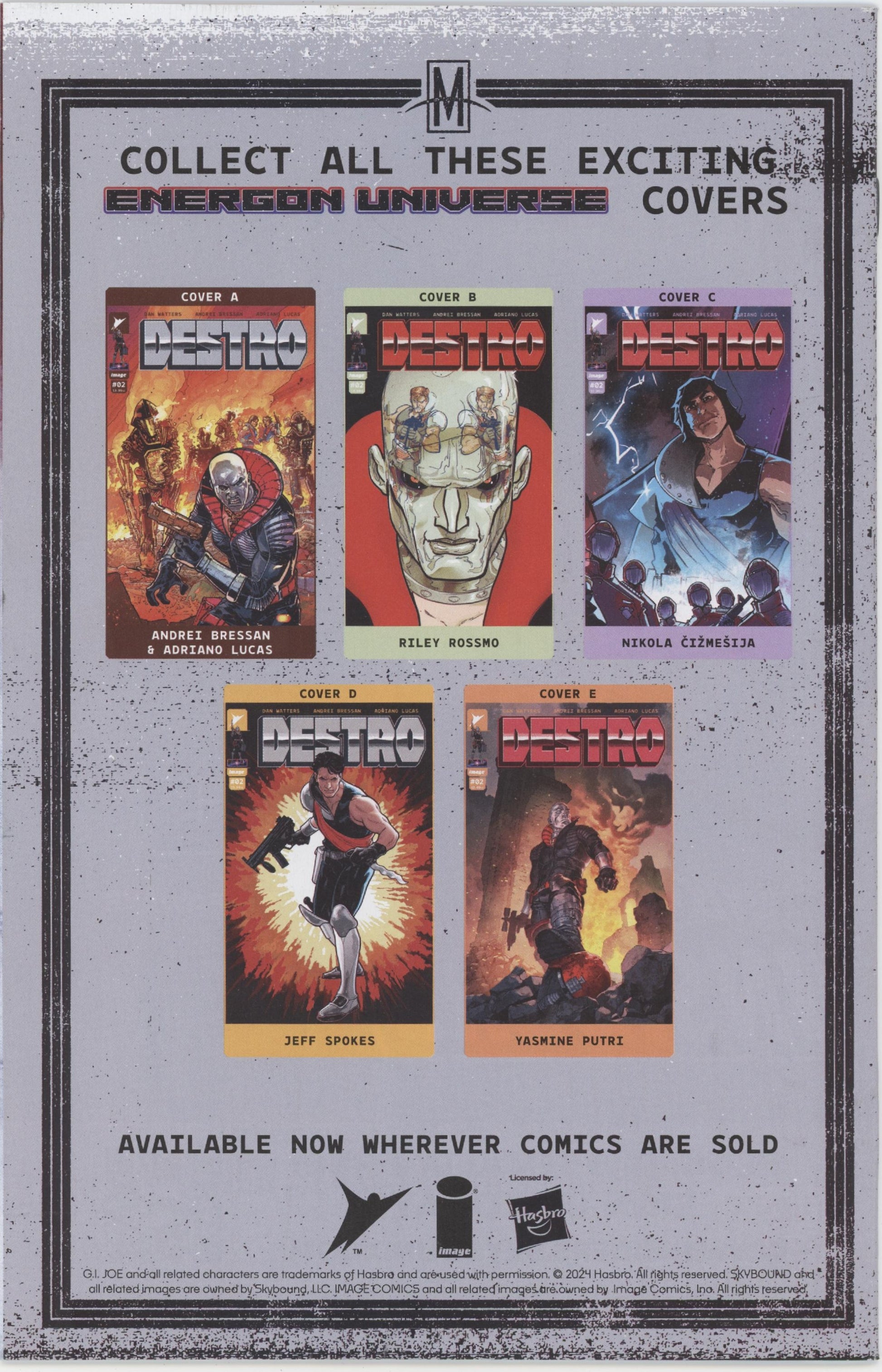 Limited 1 for 25 Retailer Incentive Variant Cover. Written by Dan Watters. Art by Andrei Bressan and Adriano Lucas. Cover by Jeff Spokes. The world is changing-and Destro means to come out on top! But with Cobra Commander breathing down his neck and mercenaries Xamot and Tomax seeking to dethrone him as the world's premier weapons manufacturer, he'll have to survive the future in order to build it. 28 pages, full color. Rated T