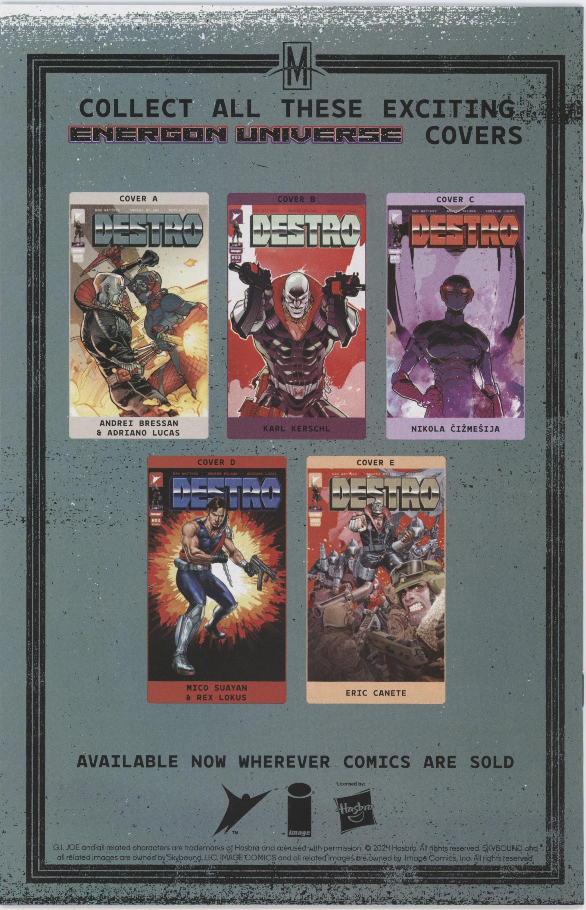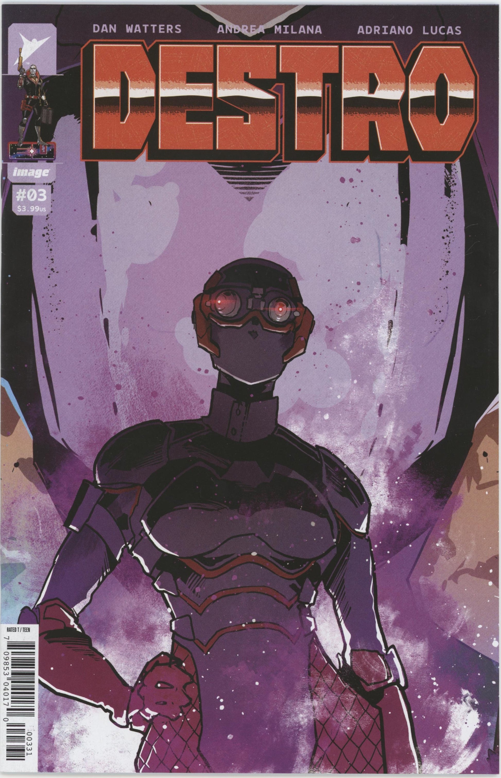 Limited 1 for 10 Retailer Incentive Variant Cover. Written by Dan Watters. Art by Andrea Milana, Adriano Lucas. Cover by Nikola Cizmesija. Stranded in the mountains without any weapons, Destro must survive Chameleon's wrath. But who is Chameleon? And why do they want Laird Destro dead? 28 pages, full color. Rated T+