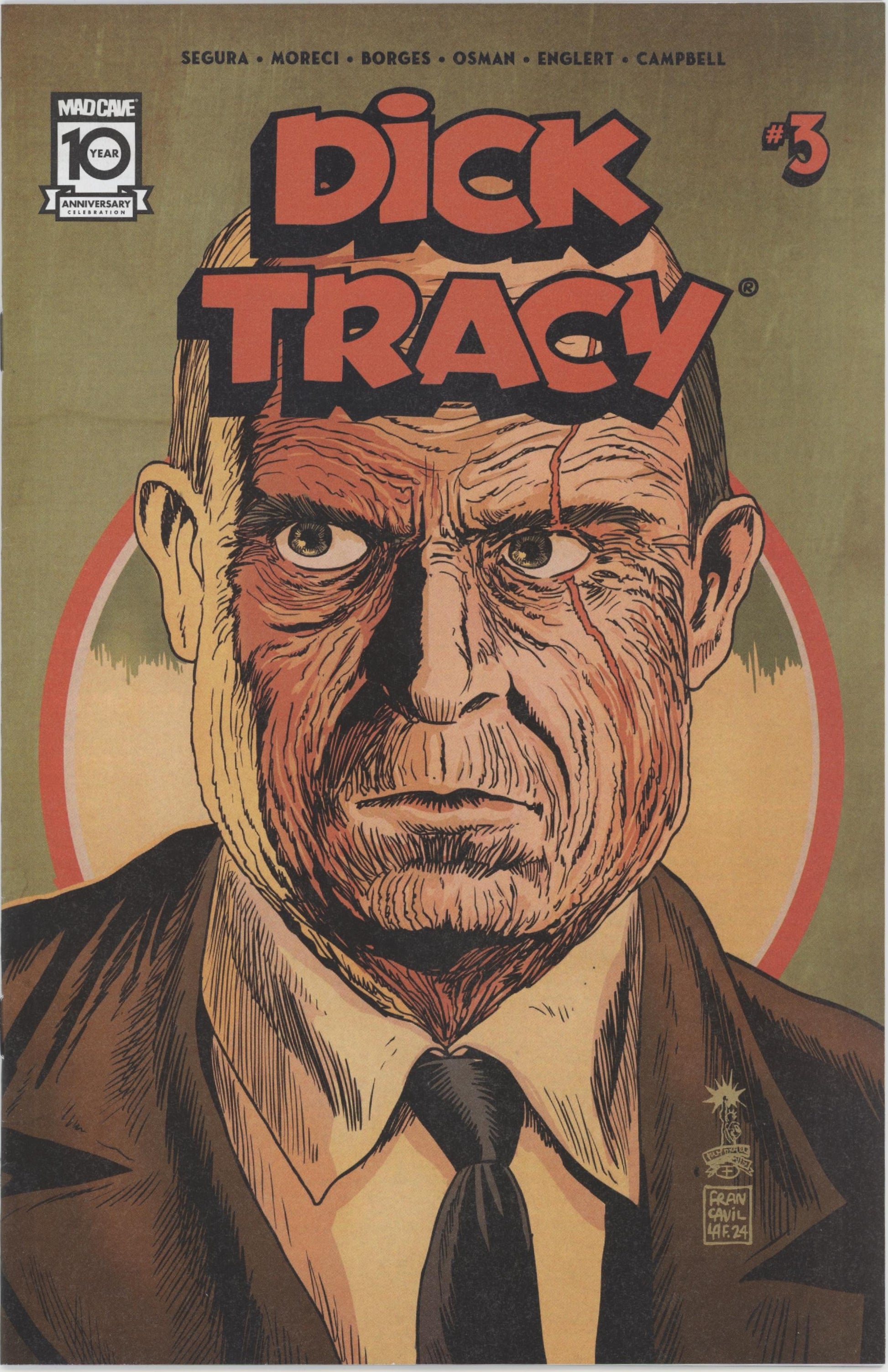 Limited 1 for 10 Retailer Incentive Variant Cover. Written by Alex Segura and Michael Moreci. Art by Geraldo Borges. Cover by Francesco Francavilla. THE ORIGIN OF DICK TRACY CONTINUES IN THE HIT NEW SERIES FROM MAD CAVE! Battle lines are drawn as the city braces for an all-out gang war-and Dick Tracy and his ragtag allies are scrambling to piece together the mystery that might prevent it! But how does today's raging turf war tie into Tracy's own haunted memories from his time in the service? Plus: the true identity of the new player on the scene becomes clearer! 28 pages, full color. Rated T+
