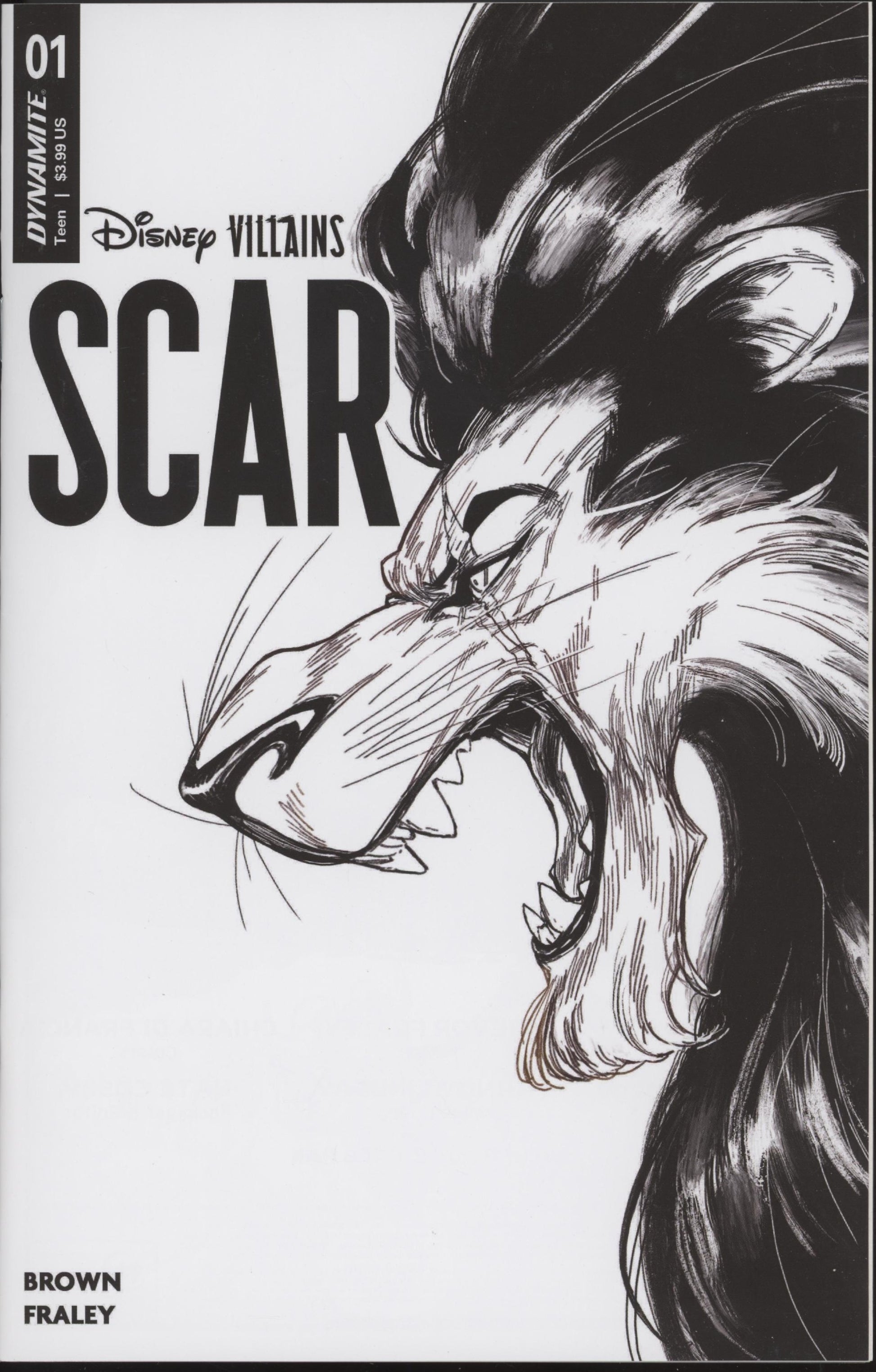 Limited 1 for 15 Retailer Incentive Variant Cover. Written by Chuck Brown. Art by Trevor Fraley. Cover by Jahnoy Lindsay. A startling new vision starring Disney's greatest villain, set within the world of The Lion King! Eisner and Ringo Award-winning author Chuck Brown (Bitter Root) and stunning artist Trevor Fraley tell a tale of fire and fury, centered on an enraged Scar, unable to accept that he will never be king - not so long as long as Mufasa and his new son inhabit Pride Rock. A plan is starting to formulate within Scar's corrupt mind, which will bring him face-to-face with the mysterious shaman, Rafiki… 40 pages, full color. Rated T