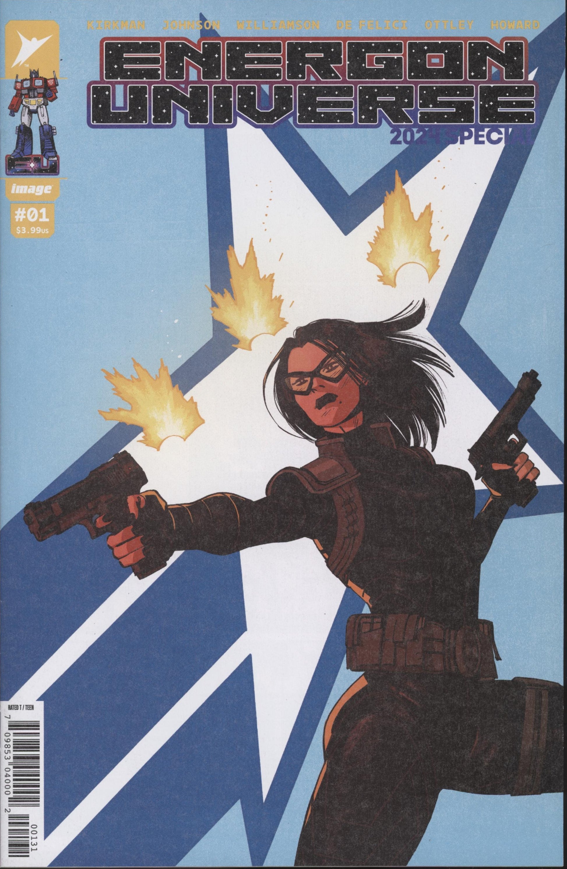 Limited 1 for 10 Retailer Incentive Variant Cover. Cover by Tom Reilly. Written by Daniel Warren Johnson, Robert Kirkman and Joshua Williamson. Art by Ryan Ottley, Lorenzo De Felici and Jason Howard. A special new printing of Energon Universe Special (2024 Image) FCBD #1 featuring three all new stories from the Energon Universe, with stunning revelations for the worlds of Transformers, G.I. Joe, and Void Rivals from the biggest names in comics. A perfect jumping on point for new readers and a can't-miss for long-term fans. Featuring: Transformers by Daniel Warren Johnson and Ryan Ottley; Void Rivals by Robert Kirkman and Lorenzo De Felici; and G.I. Joe by Joshua Williamson and Jason Howard. 28 pages, full color. Rated T