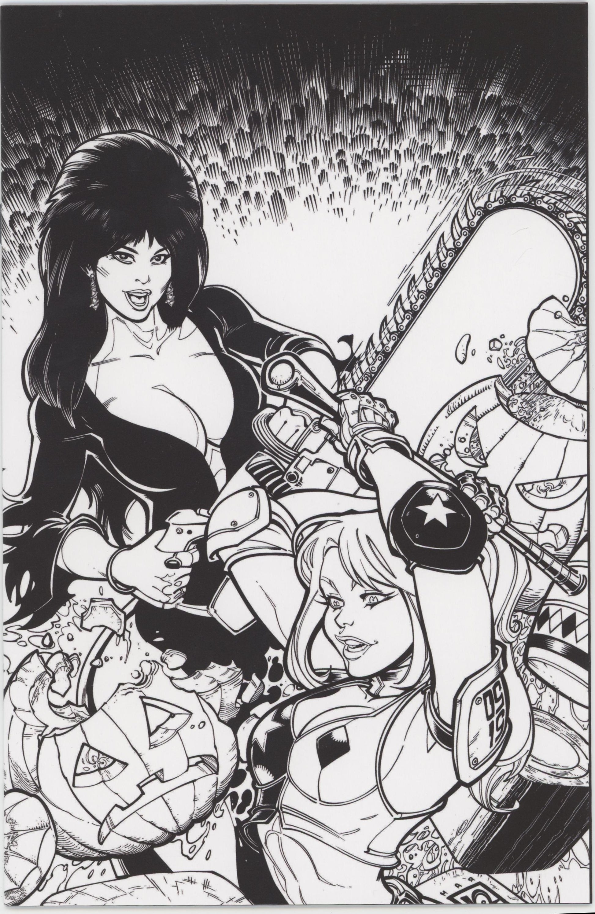 Harley Quinn X Elvira #1 Cover Q Inc 1:15 Chad Hardin Line Art Full Art Variant