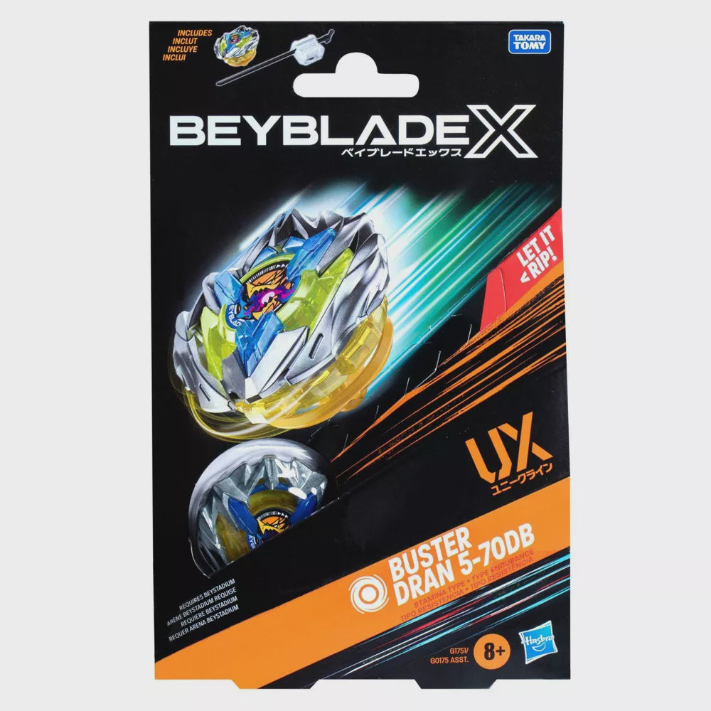 Experience the thrill of the next generation of Beyblade stadiums, launchers and tops: Beyblade X with the Beyblade X Buster Dran 5-70DB UX Starter Pack which includes 1 right-spinning Stamina Type top with an Attack Type blade and launcher (Beystadium required, sold separately). Launch right into battle or reconfigure the interchangeable blade, ratchet, and bit of this Starter Pack with those of other Beyblade X tops (sold separately) to create your own unsurpassable top. UX tops are designed with unique functionalities expanding your customization options beyond what BX tops offer. Beyblade X features the X-Celerator Gear System innovation to level-up your game. When the gear of a Beyblade X top engages the rail of the Beystadium arena, it can super-accelerate into an Xtreme Dash rocketing it around the stadium for crushing collisions and epic bursts. Bladers launch their tops into fierce clashes against their opponent’s scoring points with each confrontation – first to score 4 points wins. Hasbro Beyblade toys with authentic Takara Tomy die-cast metal tops make great kids gifts for boys and girls ages 8 and up.