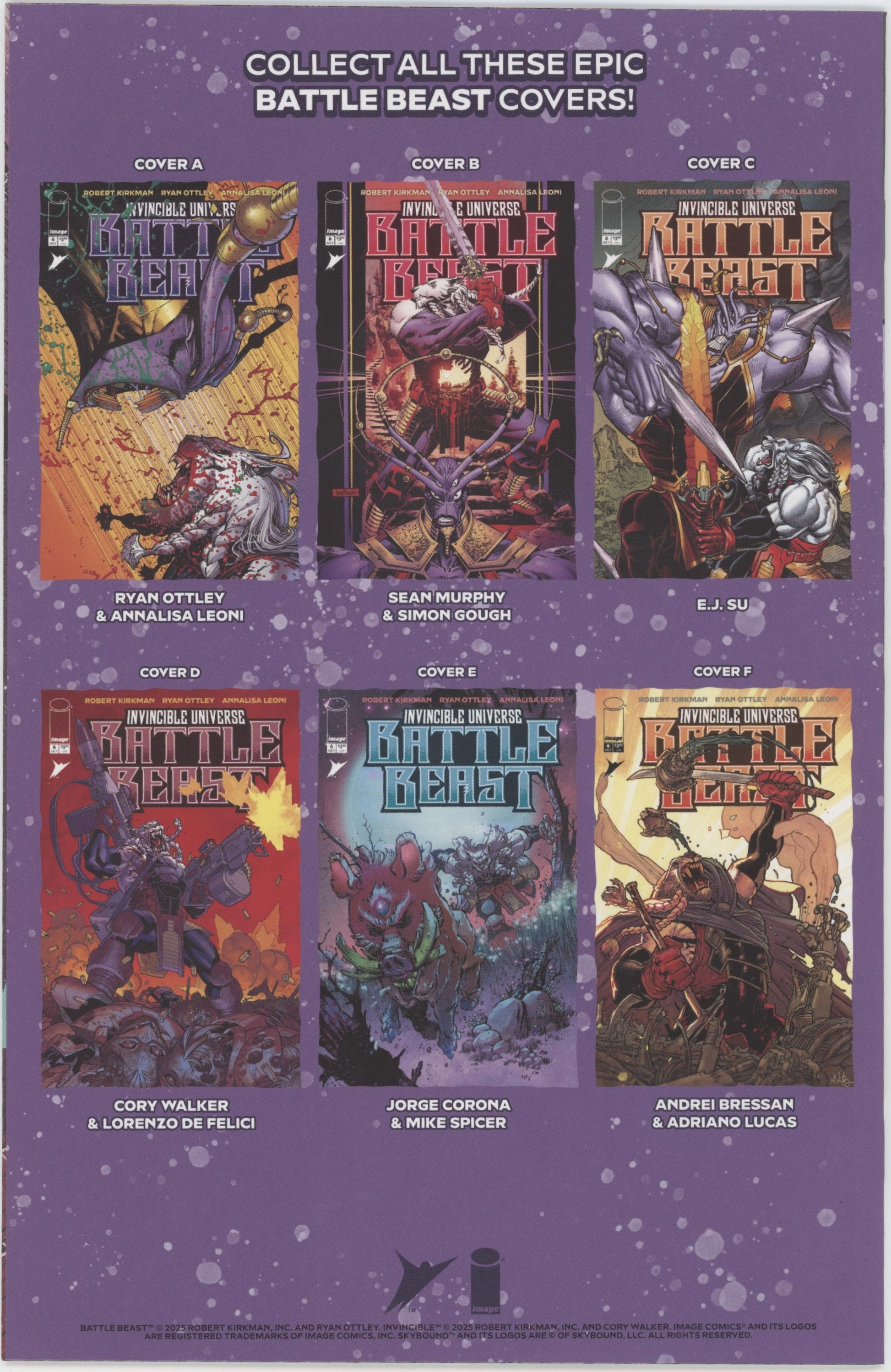 Limited 1 for 10 Retailer Incentive Variant Cover. (W) Robert Kirkman (A) Ryan Ottley, Annalisa Leoni (CA) E.J. Su **END OF STORY ARC ** Battle Beast goes to war. A looming threat emerges, one longtime fans of **INVINCIBLE **will recognize.