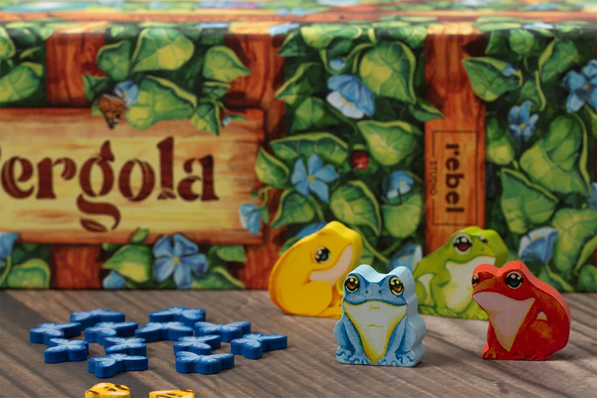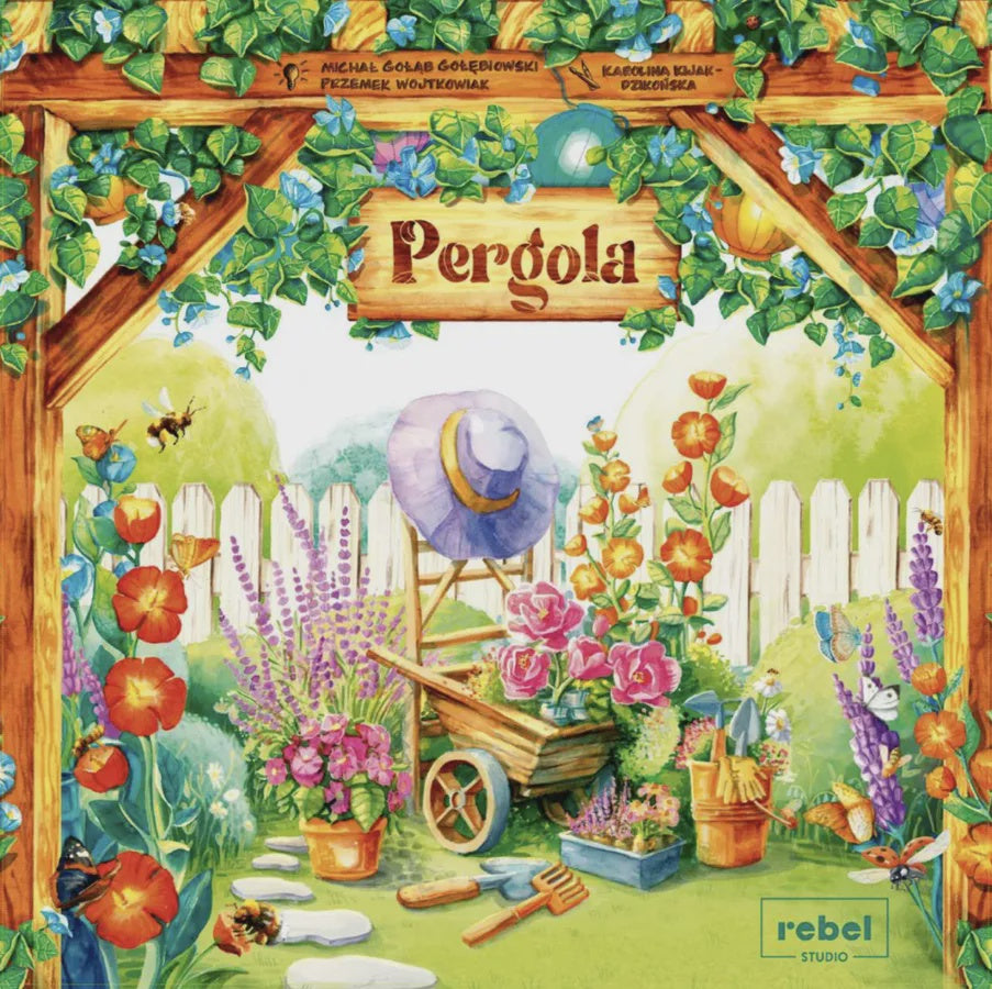 In Pergola, players develop their gardens, grow new plants, and attract insects and small animals. On their turn, a player chooses one of the four available tools, picks the presented items, and arranges them in their garden. Then they perform the action corresponding to the chosen tool. Since players have a lot of freedom in arranging plants in their gardens, after fifteen rounds each garden looks completely different and scores differently. The player who accumulates the most points wins.