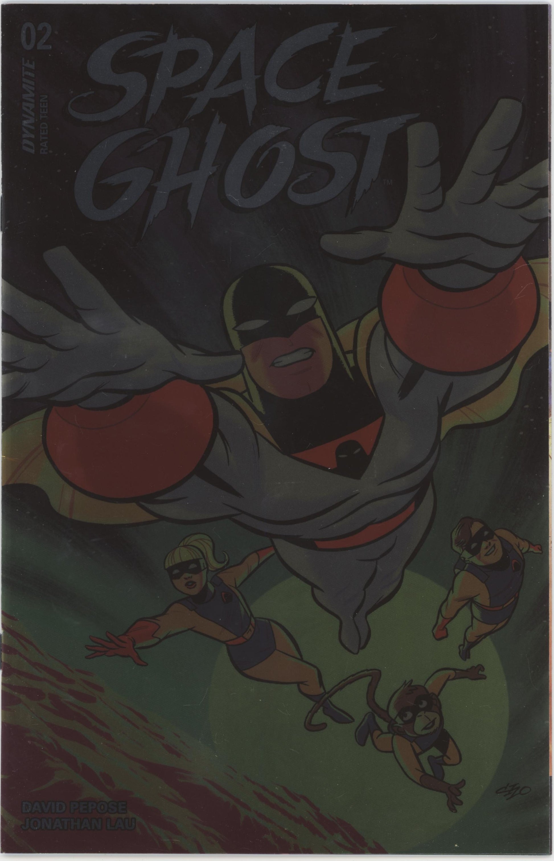 Limited 1 for 10 Retailer Incentive Variant Cover. Written by David Pepose. Art by Jonathan Lau. Cover by Michael Cho. '...They call it the Ghost Planet now.' Jan, Jace, Blip and Space Ghost travel to the Ghost Planet, the mysterious headquarters of the even more mysterious Space Ghost. Leaving on an urgent mission, Space Ghost give explicit orders to: STAY. PUT. What could go wrong? Also featuring an unexpected flight of the Phantom Cruiser! Over the next year, everything you know about Space Ghost, his companions and his enemies will be revealed as only Dynamite can! Written by David (Punisher) Pepose and drawn by Dynamite superstar Jonathan Lau, issue #1 features an array of the most incredible artists in the known Galaxy: Bjorn Barends, Francesco Mattina, Jae Lee and Michael Cho! ALL COVERS CARDSTOCK 32 pages, full color. Rated T