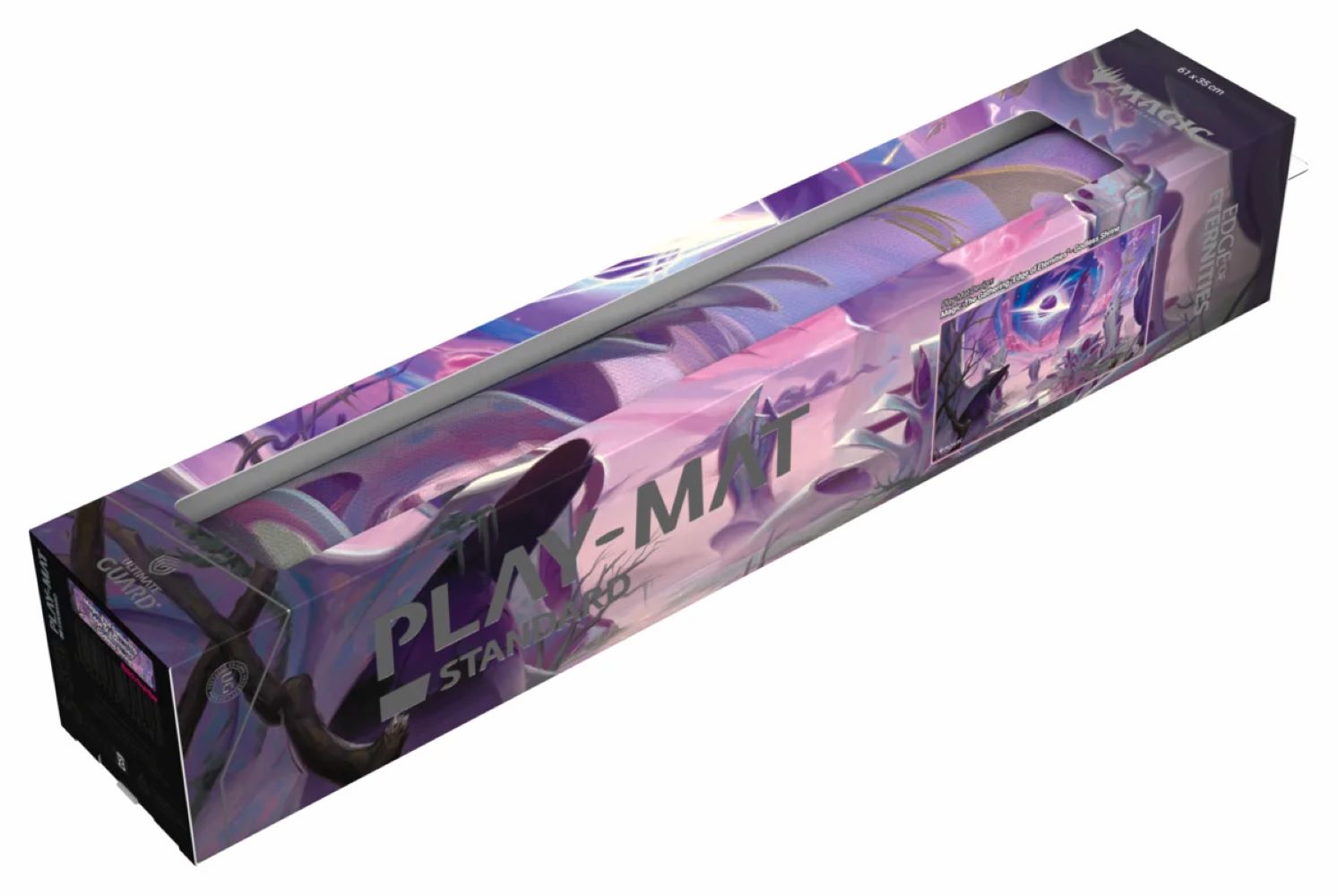The Play-Mat in the standard size 61x35cm shows officially licensed artworks from Magic: The Gathering's "Edge of Eternities" set. The soft cushioned Play-Mat with non-slip underside improves the gaming experience, protects gaming cards and accessories, and is even more durable than classic Play-Mats thanks to its stitched edges.