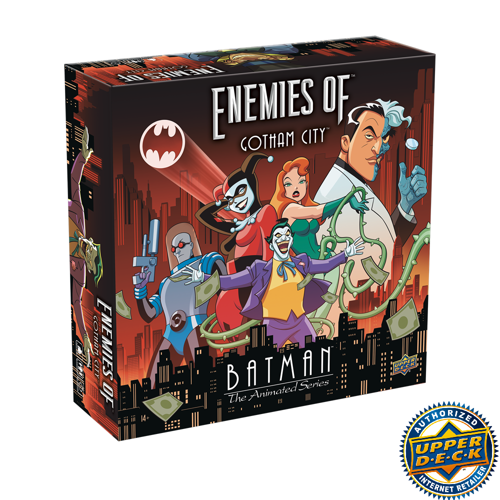 Enemies of Gotham City is an area-control game based off the beloved show Batman: The Animated Series. Play as one of twelve unique asymmetric villains like The Joker, Harley Quinn, Mr. Freeze, and more in an effort to take control of Gotham City's districts. Make some cash, thwart Batman, and become the most infamous villain of them all.