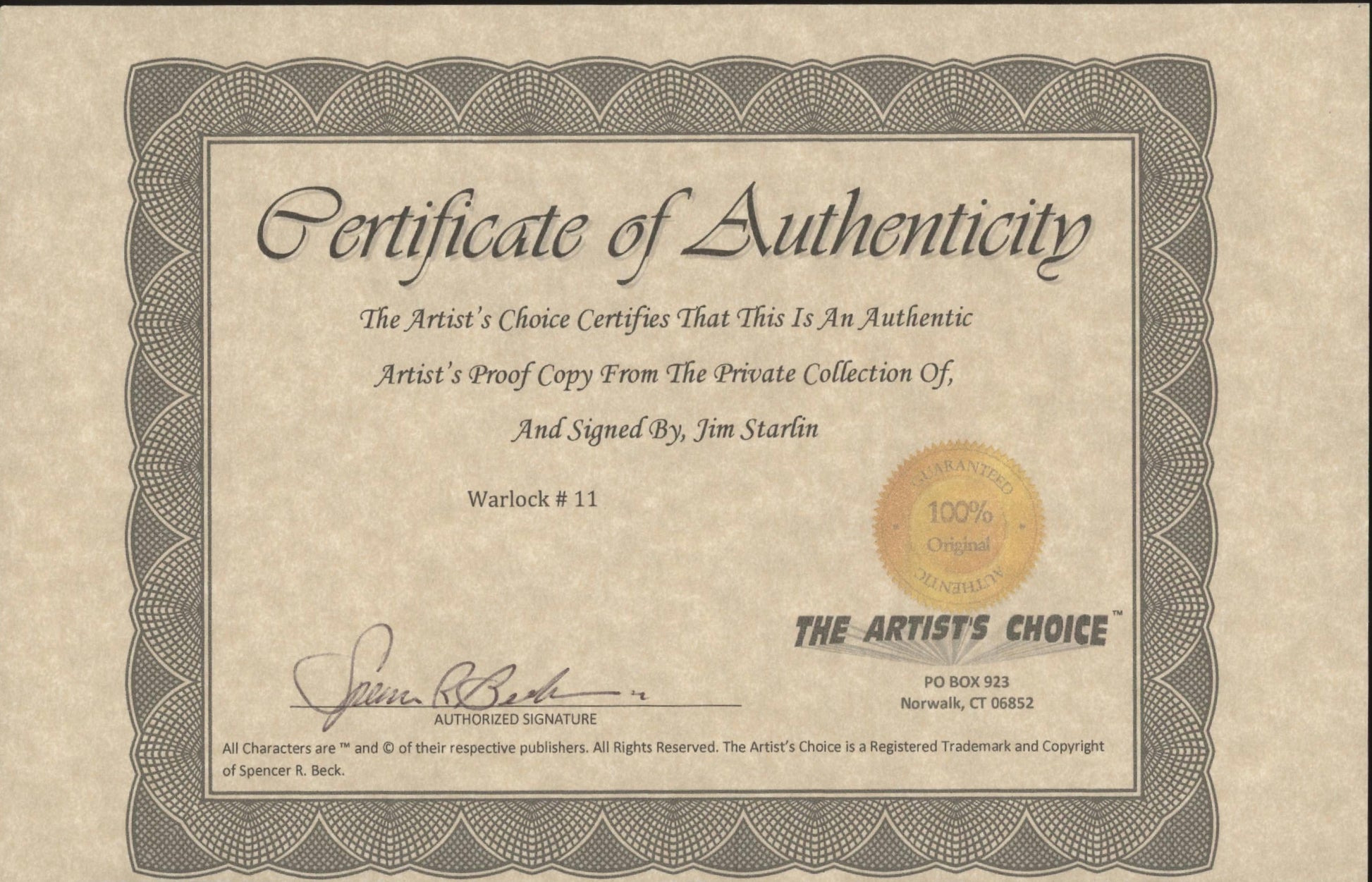 Warlock Issue #11 Jim Starlin Personal Copy Auto with COA #2