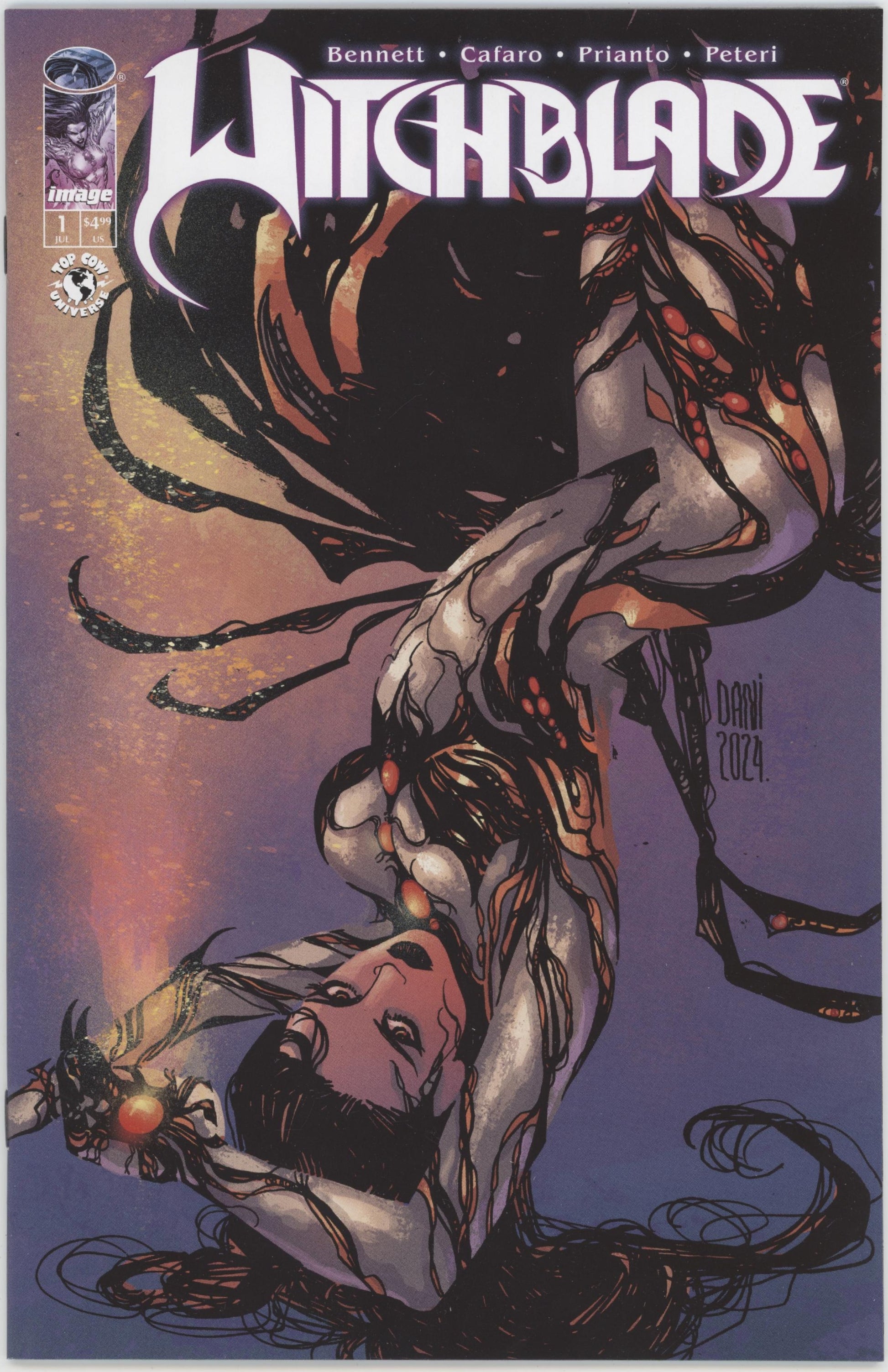 Limited 1 for 10 Retailer Incentive Variant Cover. Written by Marguerite Bennett. Art by Giuseppe Cafaro and Arif Prianto. Cover by Dani Strips and Brad Simpson. Series Premiere. Sara Pezzini is back in an all-new origin story! A reimagining of the classic storyline, this high-octane supernatural thriller starts at the beginning with familiar characters and new story arcs. New York City Police Detective Sara Pezzini's life was forever fractured by her father's murder. Cold, cunning, and hellbent on revenge, Sara now stalks a vicious criminal cabal beneath the city, where an ancient power collides and transforms her into something wild, magnificent, and beyond her darkest imaginings. From co-creator Marc Silvestri (The Darkness, Cyber Force, Batman and the Joker: The Dearly Duo) and writer Marguerite Bennett (Animosity, Batwoman, DC Bombshells) with artist Giuseppe Cafaro (Suicide Squad, Power Rangers, Red Sonja) comes a bold new era of Witchblade! 48 pages, full color. Rated T+